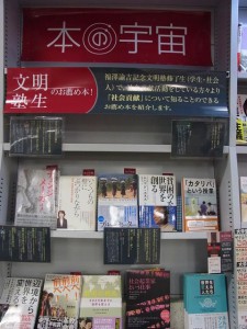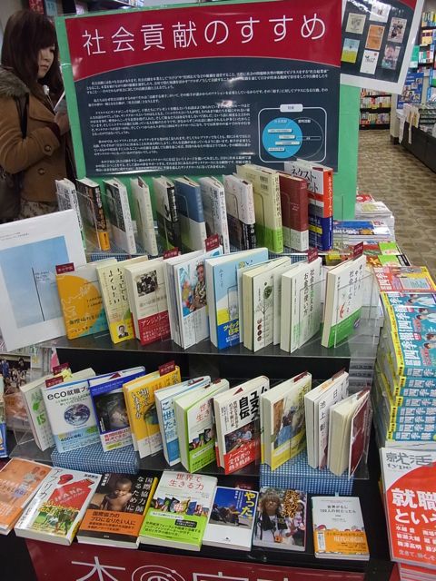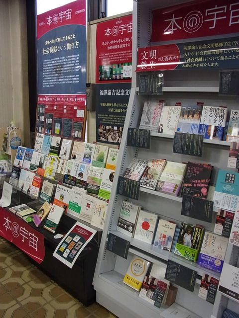 慶応義塾生活協同組合三田店3F書籍部にて展開されています「本の宇宙 presents 未来へ向けて私にできること『社会貢献という働き方』」です。最近の様子を写真でご紹介します。