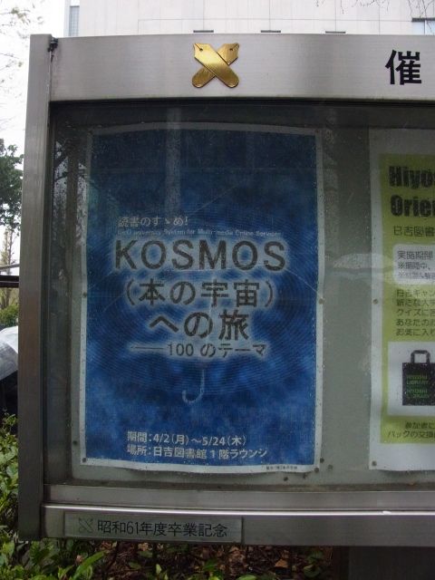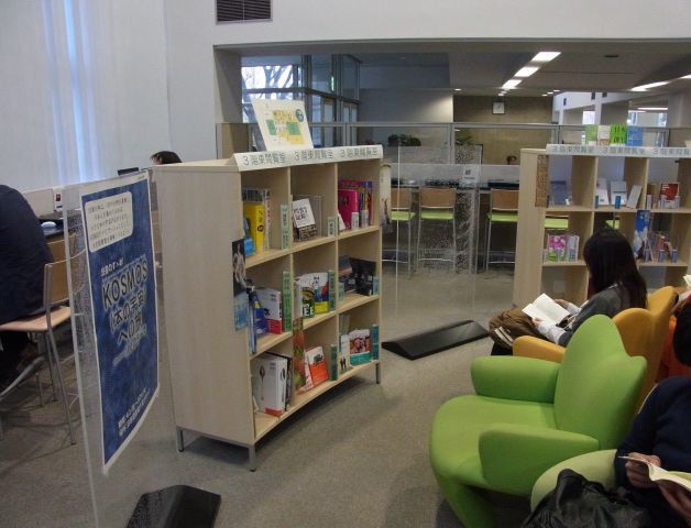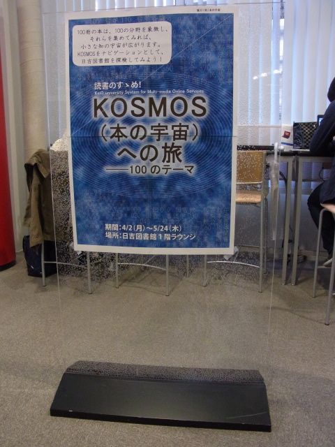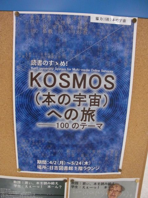 慶應義塾大学 日吉キャンパス日吉メディアセンター・日吉図書館1階ラウンジにて開催中の「読書のすゝめ! KOSMOS(本の宇宙)への旅―100のテーマ」((社)本の宇宙 協力)の模様です。4月2日(月)~5月24日(木)まで開催しています。